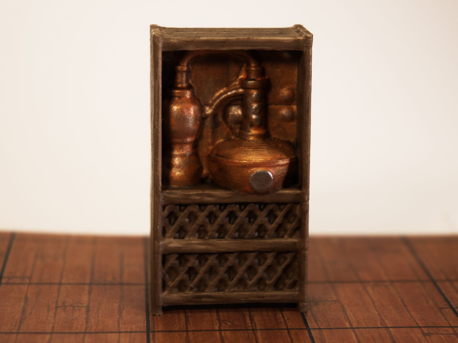 Deswegen hatte ich die Idee für die Kupfer Kessel Bar oder auch der "Cooper Caldron bar" eine Ready to Print bar mit Erweiterungen im späteren verlauf die mehr Details ermöglichen als bei meinen sonstigen eins und fertig Set. Dieses Bietet mehr raum für Abstraktion und das hinzufügen von Erweiterungen im späteren verlauf.