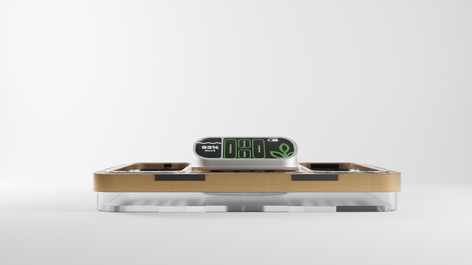 Das Kernprodukt von Aqua Herb ist der Aqua Core, ein kompaktes, autonome Messgerät zur kontinuierlichen Überwachung der Wasserqualität. Es misst pH-Wert und Teilchen-Dichte im Wasser und zeigt die Daten über ein energieeffizientes OLED-Display an. Fünf Touch-Tasten auf der Oberseite ermöglichen die Bedienung. Integrierte Lichtsensoren regulieren die Helligkeit des Displays und schätzen den Nährstoffverbrauch der Pflanzen.